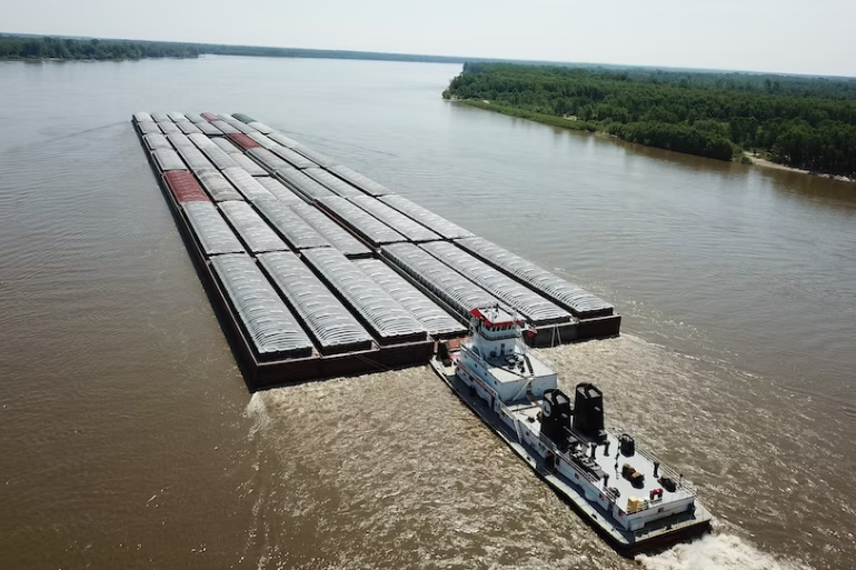 The use of barges and other vessels to transport goods on rivers and inland waterways. Effective for transport within countries and regions, often at low cost.